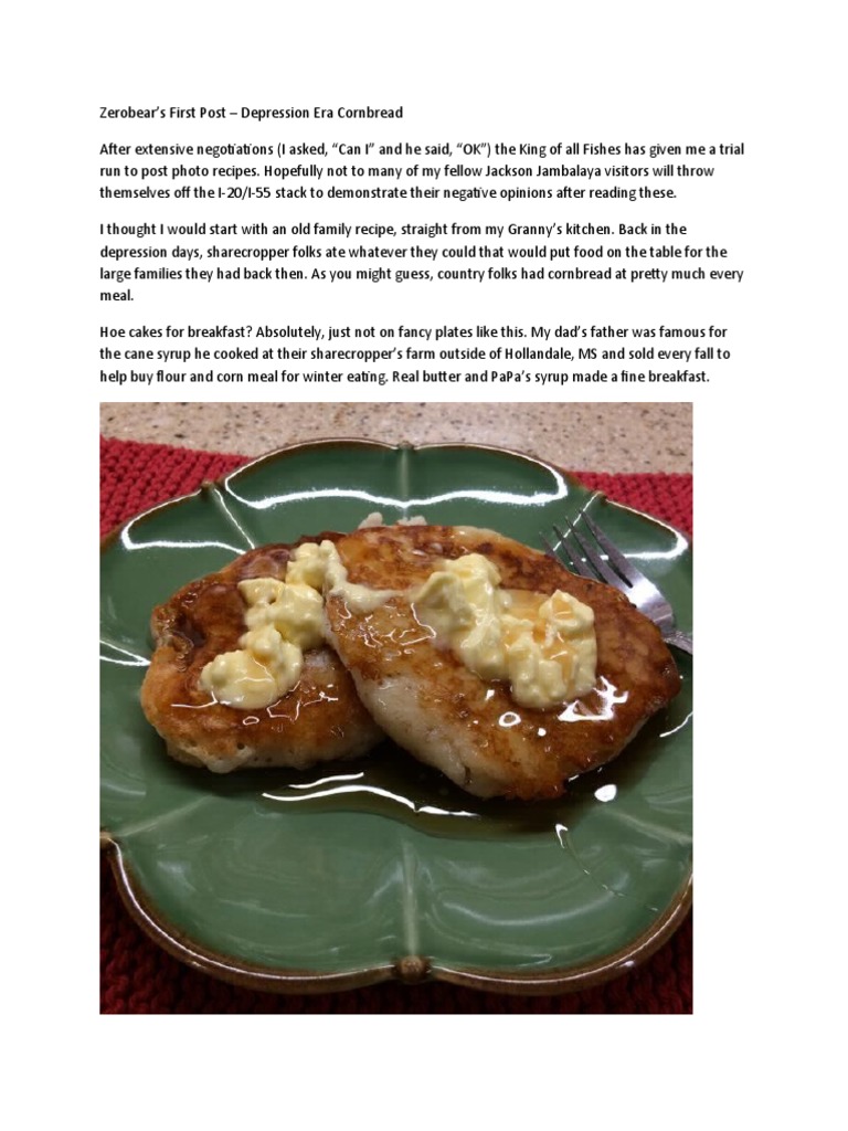 0001 Depression Era Cornbreead Pdf Flour Staple Foods
